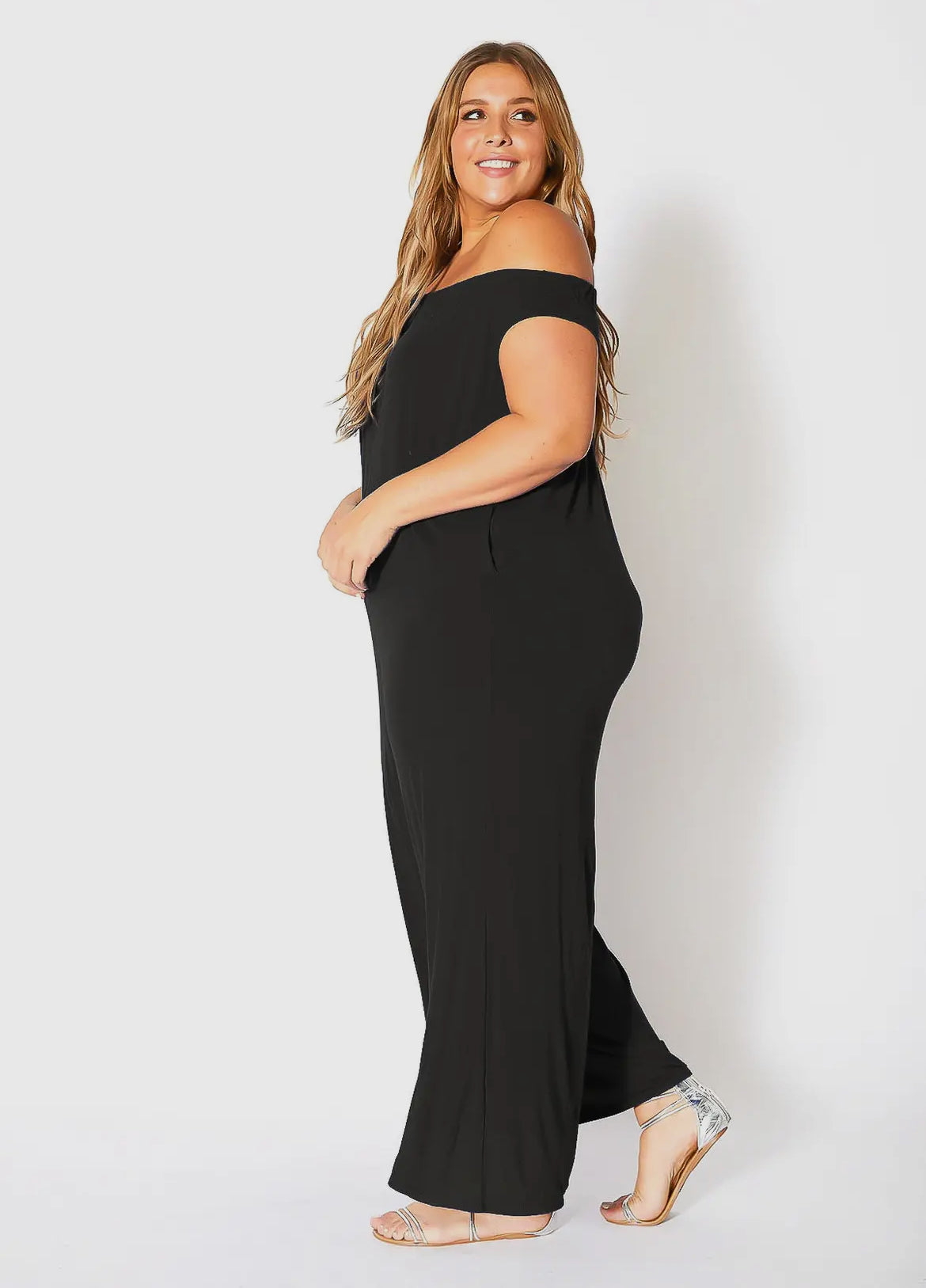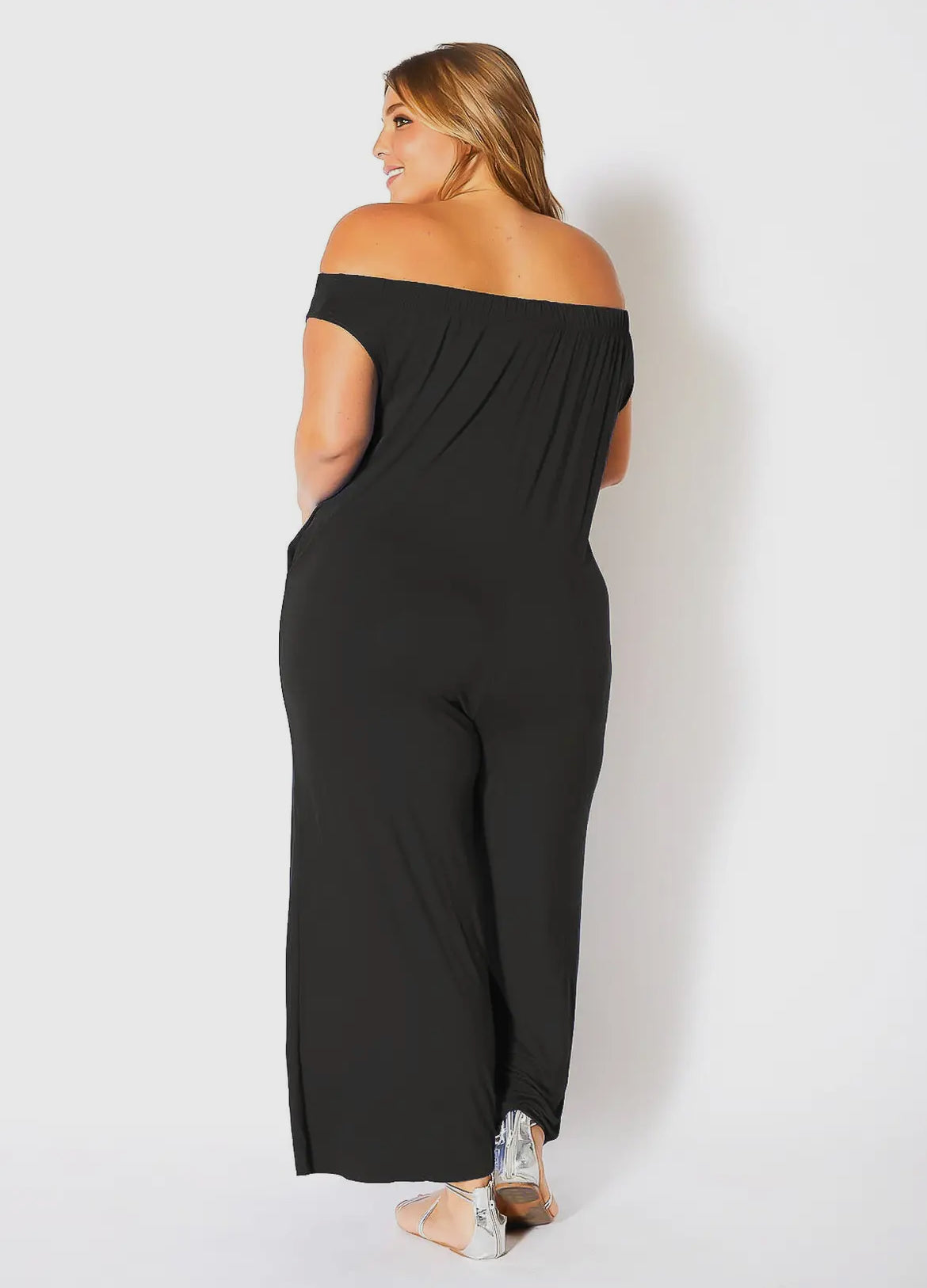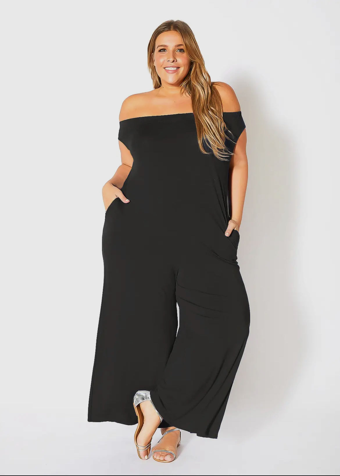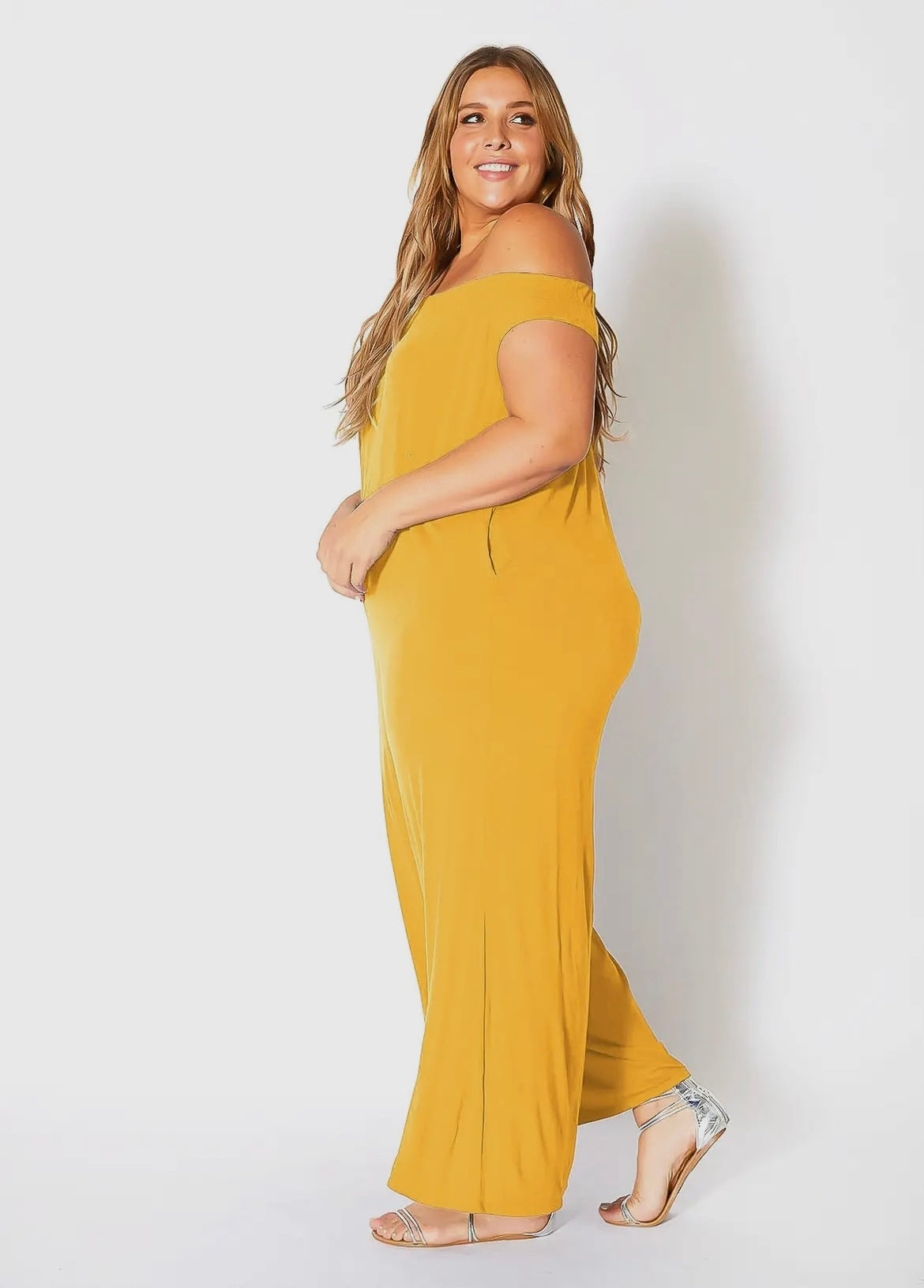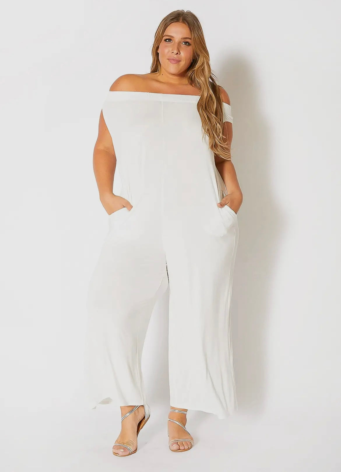Enjoy a casual stroll in this ultra comfy, off-shoulder wide leg jumpsuits with side pockets. High stretch. These are a popular look for spring and summer. 95% Rayon 5% Spandex *Delivery: 1-2 weeks