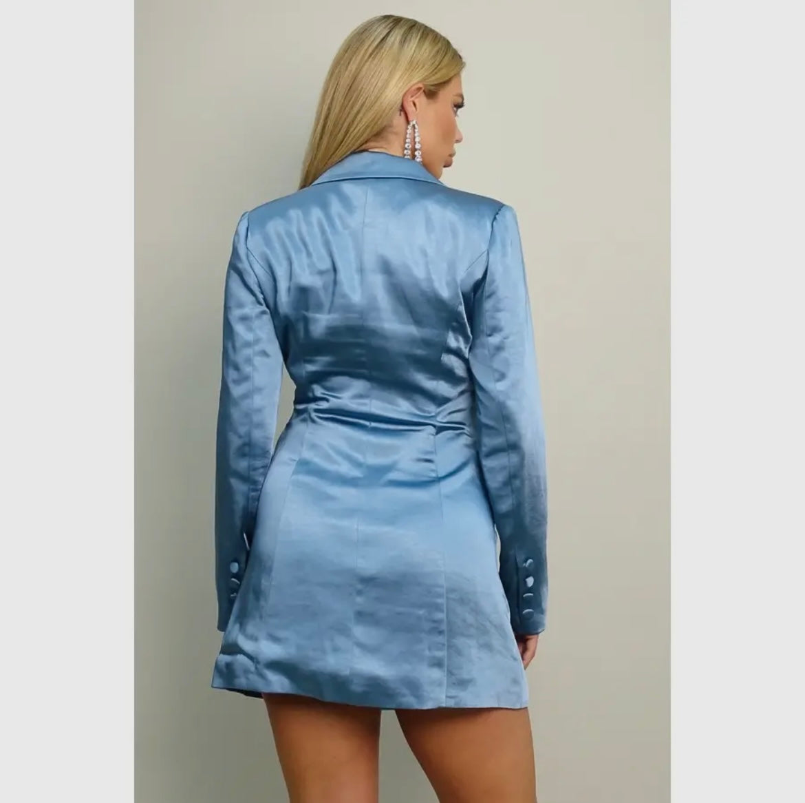 Unleash your inner fire with the Blaze Dress. Made from luxurious satin, this long sleeve blazer dress exudes a sophisticated and exclusive tone, perfect for any occasion. Its mini length, shoulder pads, fully lined (Polyester lining) design with notch lapel details will make you stand out in style. Model is 5’7 and wearing size Small *Delivery: 2-3 weeks