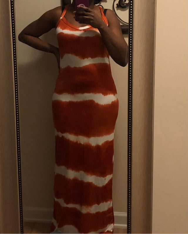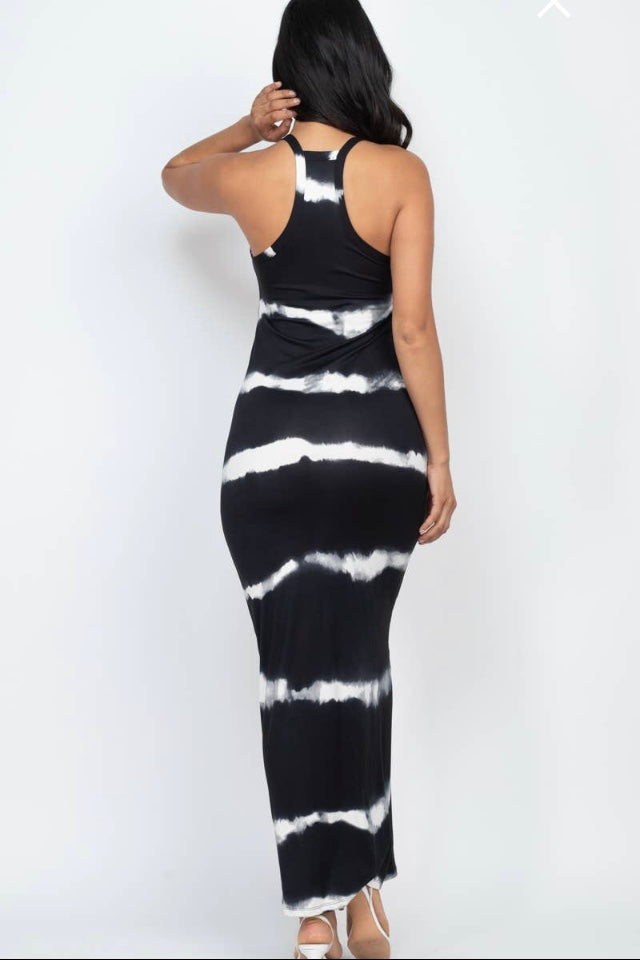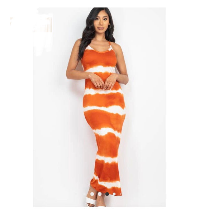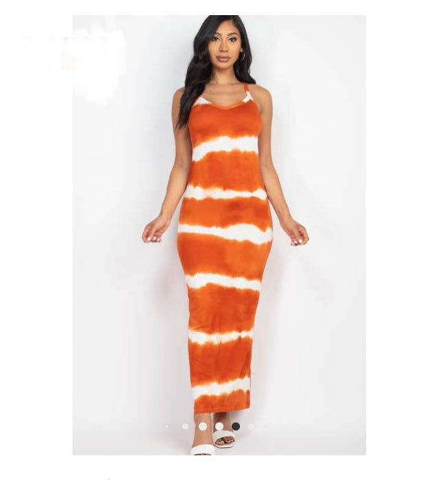 Enjoy a fitted tie dye print sleeveless maxi dress. Soft and lightweight high stretch jersey material. Razor back. Perfect for spring and summer. ** Delivery: 1-2 weeks